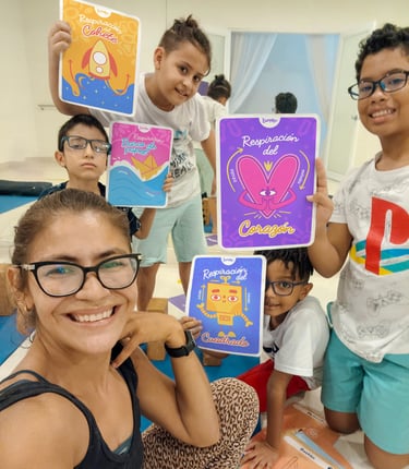 Cada tarjeta incluye instrucciones simples para que puedas realizar ejercicios de respiración consciente con los niños en casa, en la escuela o en un entorno terapéutico. Solo elige una tarjeta, sigue las indicaciones y crea una rutina divertida y relajante en cualquier momento.
